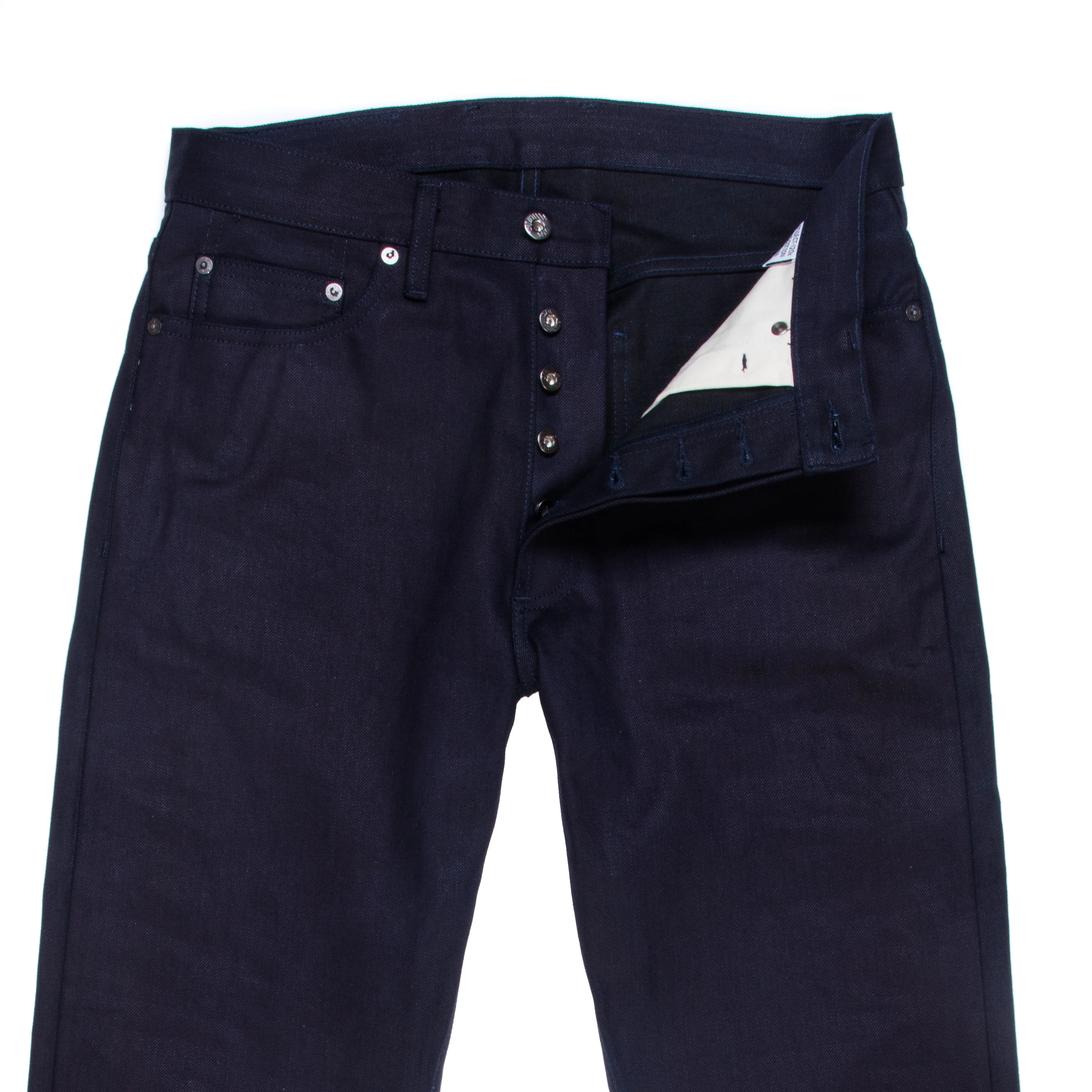 - Selvedge detailing at coin pocket and fly