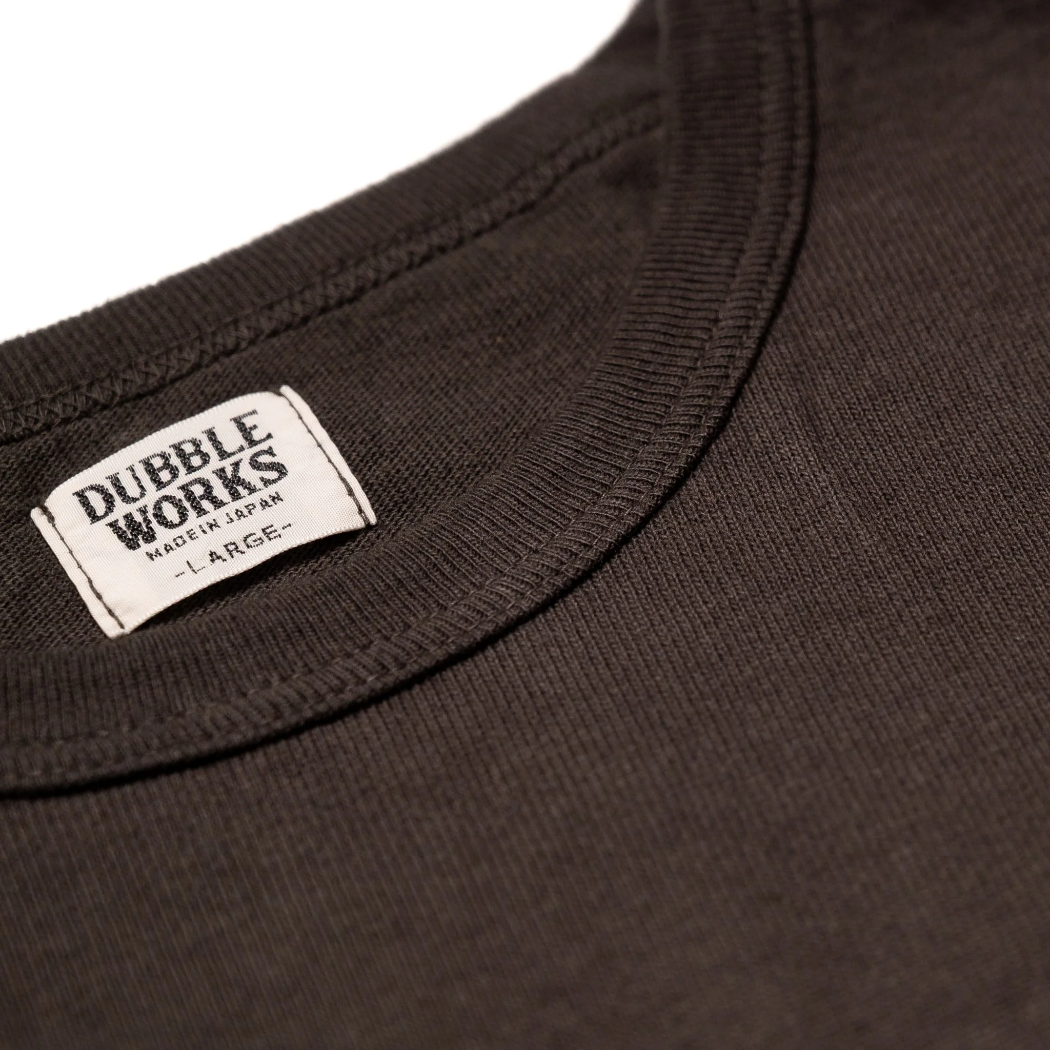 Dubblework's Heavyweight Long Sleeve Tee is knit from a No. 8 open-end yarn, a yarn that is twice as thick as the yarns used on their lighter weight items. Dubble Works knits No. 8 thick yarn on vintage Standwheeler knitting machines, replicating the distinct, crisp hand feel of vintage clothing. Open-end, airspun yarn has an airy, slightly bumpy surface, full and light to the touch, with a slight bounce and a surprising degree of stretch. The Standwheeler knitting machines produce a tubular knit, very similar to a Loopwheeler machine, but is designed to handle the heavier yarns, and results in a garment that seems to be from another time!